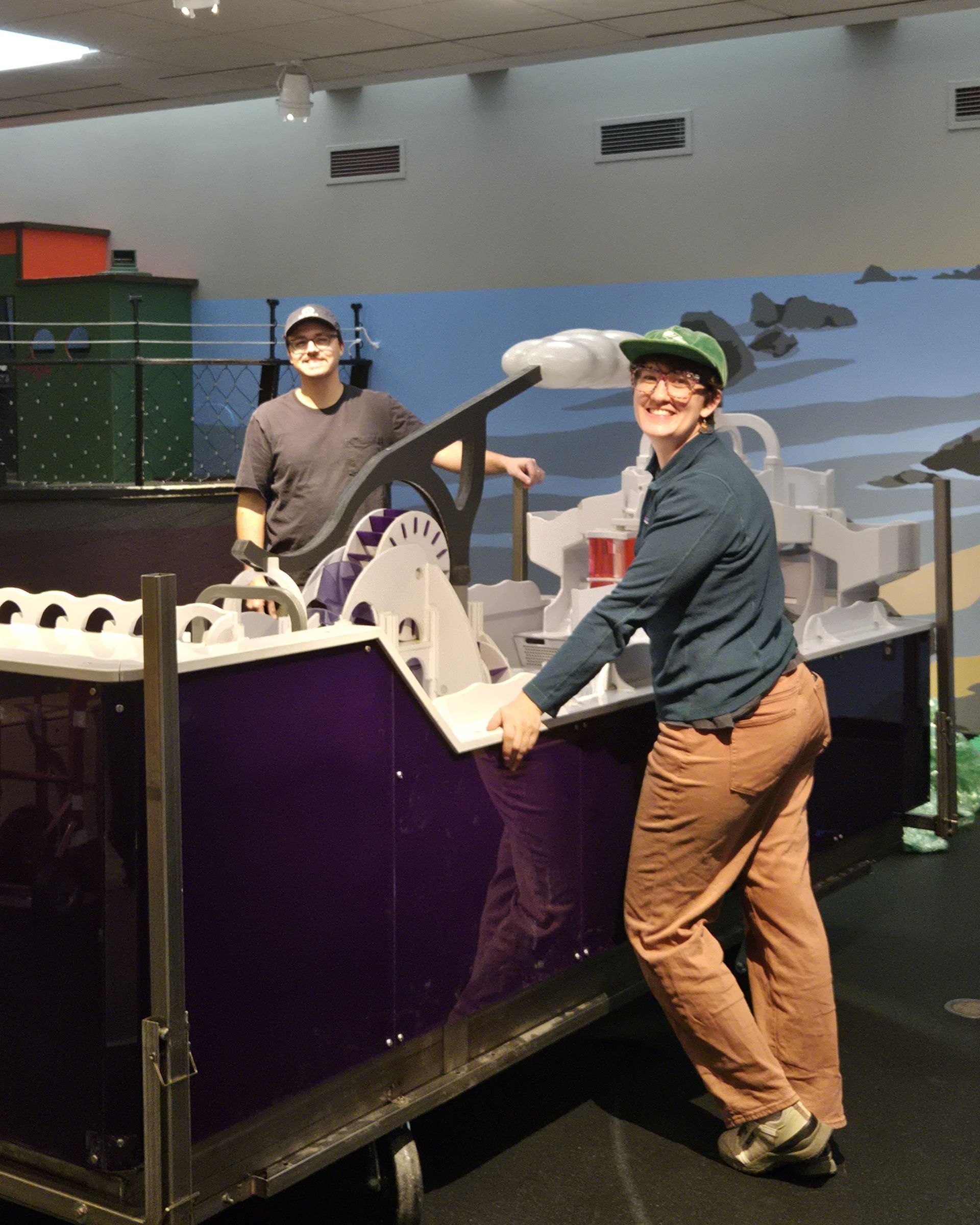 Earlier this month, the fabrication team, led by Tom Egan, made the long drive from Kansas and delivered the exhibit early on a Tuesday morning. ScienceWorks staff jumped right in to help unload, assemble, and learn the ins and outs of maintaining this exciting addition. Now, after months of dreaming, planning, and testing,